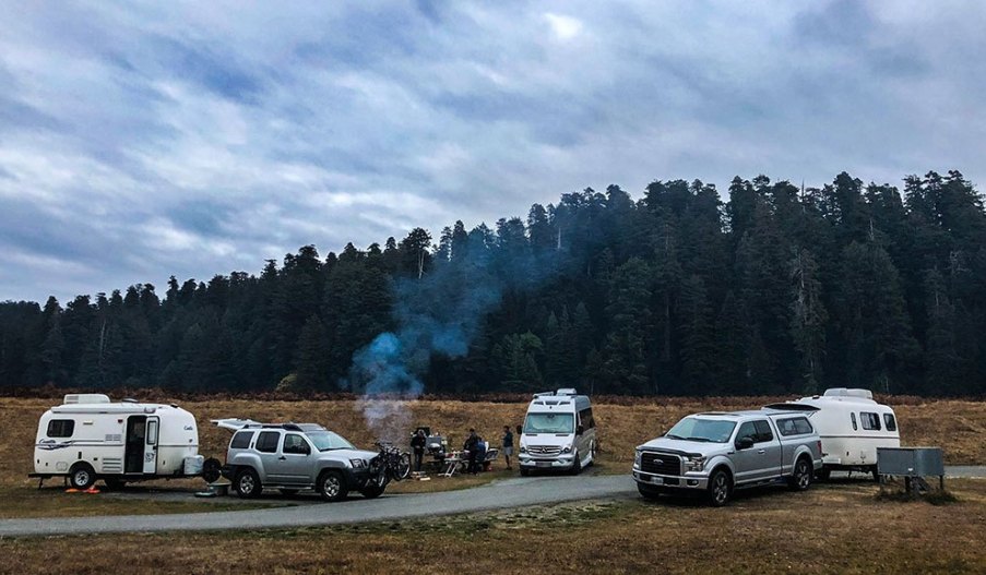 Soon, The Epic Van was bookended with twin Casitas, and we were off on a quick, two-mile hike to see some of the oldest, tallest trees on the planet.