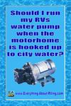 Should I run my RVs water pump when the motorhome is hooked up to city water?